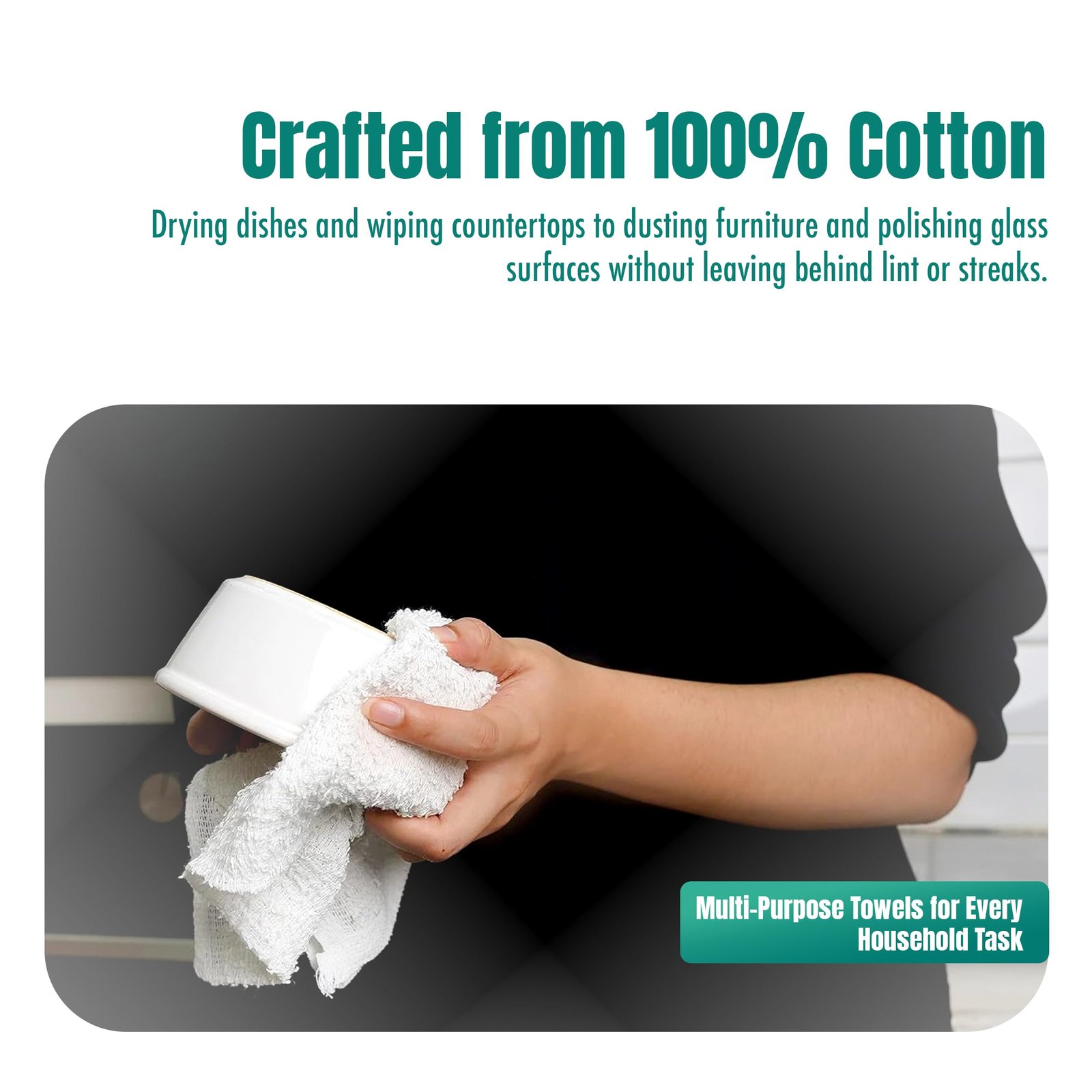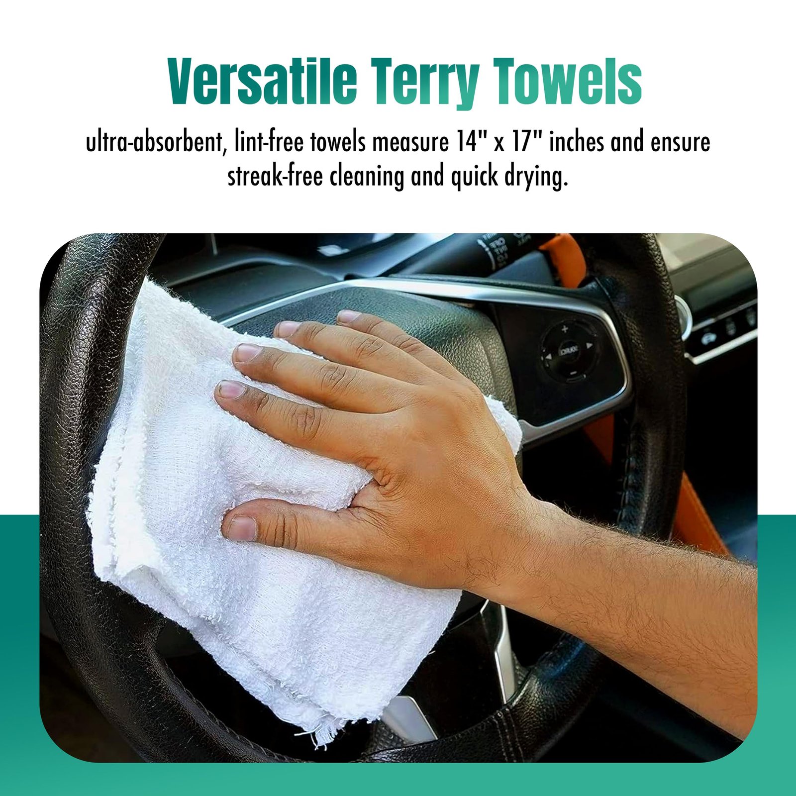 PREMIUM QUALITY: Our terry cleaning cloth towels are made of 100% Cotton Durable & Absorbent. Come with value Pack of 60 utility towels measuring 14″ x 17″ in a poly bag.