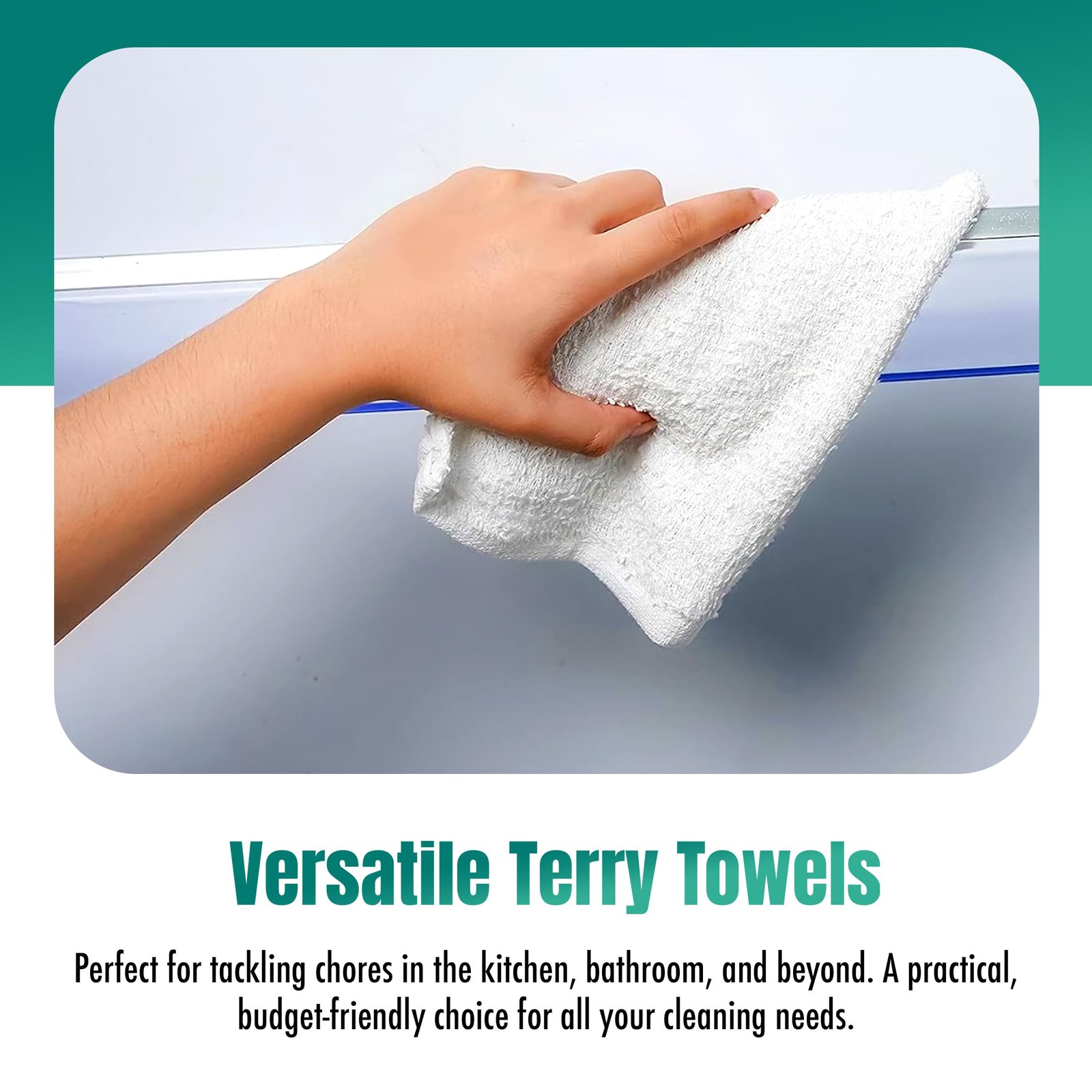 VERSATILE CLEANING ESSENTIALS: These cotton cleaning cloths are a must-have for any home or business. Whether it’s for wiping surfaces, drying hands, or cleaning up spills, our terry cloth rags are up for the task.