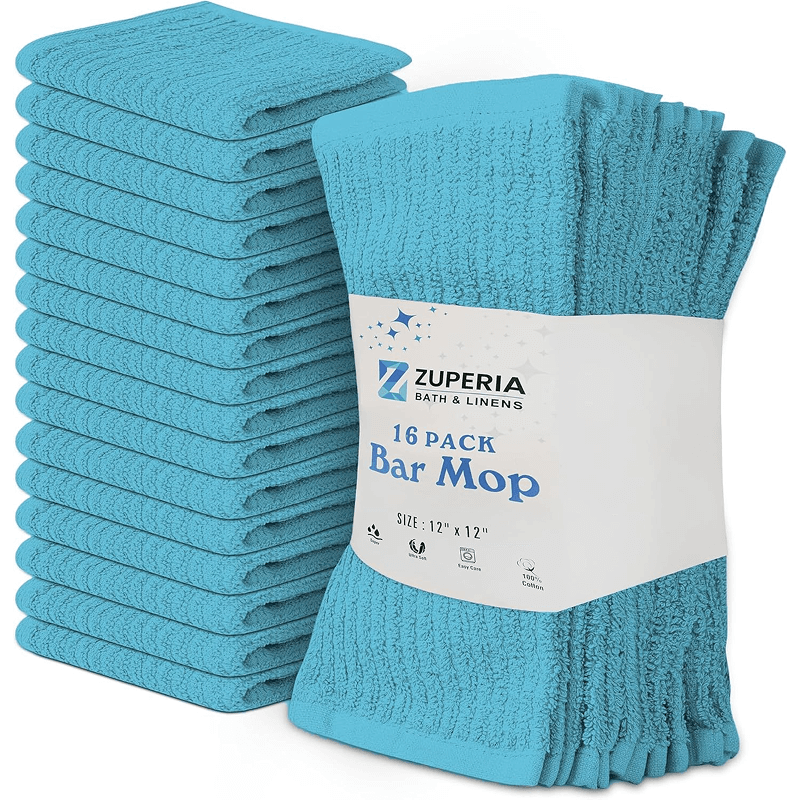 Premium Ribbed Bar Mops Aqua – | 100% Cotton | 12" x 12" | 20 Oz per Dzn