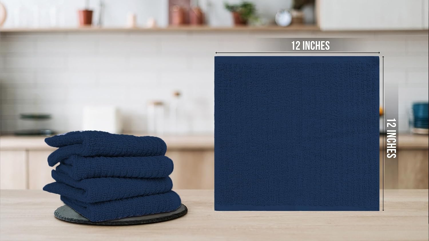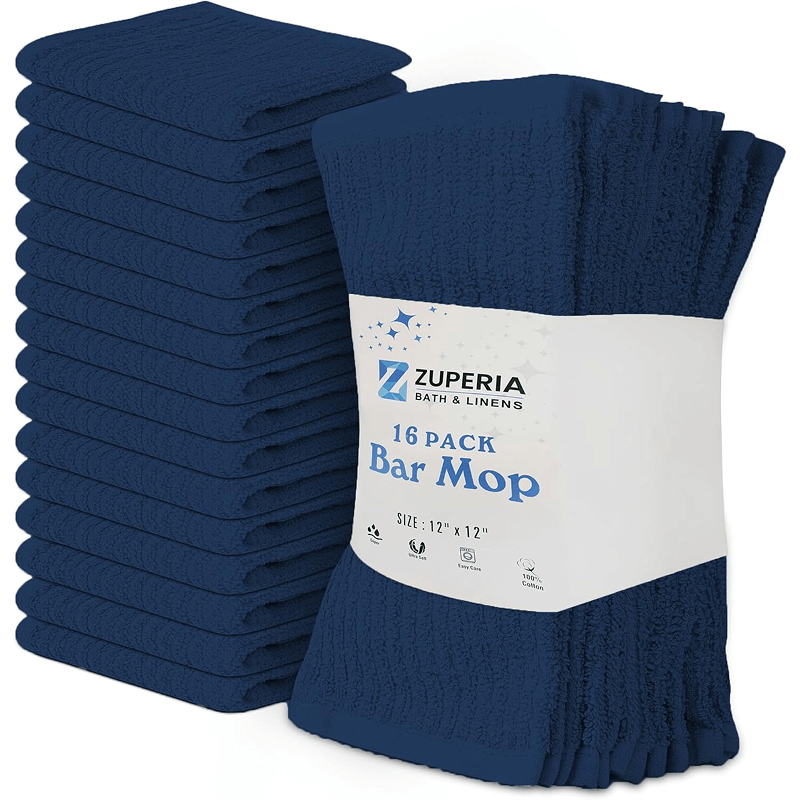 Premium Ribbed Bar Mops Navy Blue– | 100% Cotton | 12" x 12" | 20 Oz per Dzn